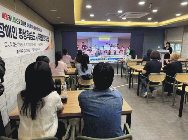 ÀÌ¾î ¼ÛÀÎ¾Ö Çѱ¹Àå¾ÖÀνɸ®Áö¿ø¼¾ÅÍ ´ëÇ¥°¡ ¡®Àå¾ÖÀÎ Æò»ý±³À° ÇöÀåÀÇ À̽´¿Í ¼Ö·ç¼Ç¡¯À» ÁÖÁ¦·Î Ư°À» ÁøÇàÇßÀ¸¸ç, ºÏ±¸ Àå¾ÖÀÎ Æò»ýÇнÀµµ½Ã ÁßÀå±â ¹ßÀü°èȹ ÄÁ¼³ÆÃ °á°ú º¸°í¿Í ±ÝÁ¤±¸ Àå¾ÖÀÎ Æò»ýÇнÀµµ½Ã ¿î¿µ ¿ì¼ö»ç·Ê ¹ßÇ¥°¡ À̾îÁ³´Ù. ¶Ç ¿ÃÇØ »ç¾÷¿¡ Âü¿©ÇÑ °ü°èÀÚµéÀÌ ÇÔ²²ÇÑ ¡®Çâ±â Ŭ·¡½º¡¯ Èú¸µ üÇè ÇÁ·Î±×·¥À» ÅëÇØ ÇÑ ÇØÀÇ ³ë°í¸¦ ¼·Î °Ý·ÁÇÏ´Â µû¶æÇÑ ½Ã°£À» °¡Á³´Ù.