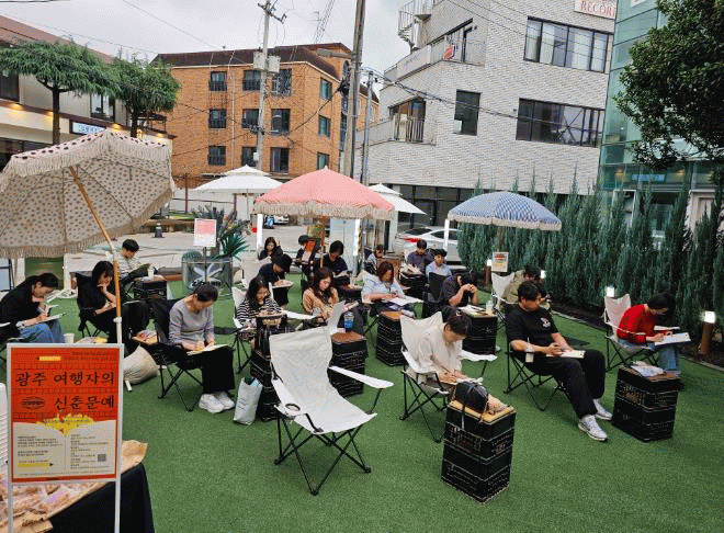 ±¤ÁÖ ½Ã¹Î°ú °ü±¤°´ µî 30¿© ¸íÀÌ Âü¿©ÇßÀ¸¸ç, 100ºÐÀ̶ó´Â Á¦ÇÑ ½Ã°£ ³» ÇÑ ÆíÀÇ ±ÛÀ» ¿Ï¼ºÇÏ´Â ¹æ½ÄÀ¸·Î ÁøÇàµÆ´Ù.