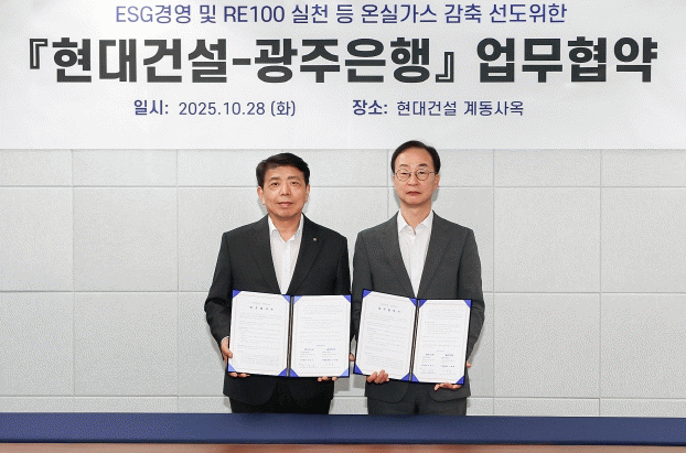 ±¤ÁÖÀºÇàÀº Çö´ë°Ç¼³°ú ¡®ESG°æ¿µ ¹× RE100 ½Çõ µî ¿Â½Ç°¡½º °¨Ãà ¼±µµ À§ÇÑ ¾÷¹«Çù¾à¡¯À» ü°áÇß´Ù°í 29ÀÏ ¹àÇû´Ù. Çù¾à½ÄÀº Çö´ë°Ç¼³ º»»ç¿¡¼ Á¤Àϼ± ±¤ÁÖÀºÇà ºÎÇàÀå°ú À̵¿ÈÆ Çö´ë°Ç¼³ »ó¹« ¹× °ü°èÀÚµéÀÌ Âü¼®ÇÑ °¡¿îµ¥ ÁøÇàµÆ´Ù.