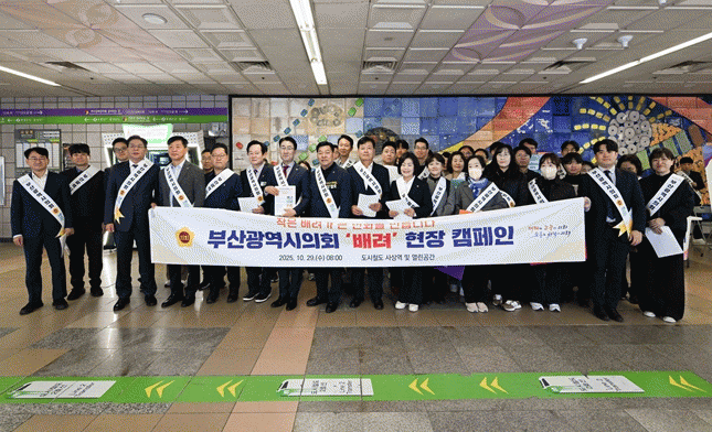 ¡®¿ì¸® »çȸÀÇ ¸¹Àº °¥µî°ú ºÒÆíÀº ÀÛÀº ¹è·Á°¡ ºÎÁ·Çؼ »ý°Ü³³´Ï´Ù¡¯¶ó´Â ½½·Î°Ç ¾Æ·¡, ºÎ»ê½ÃÀÇȸ´Â ±³Å롤¾ÈÀü¡¤Å¸ÀΡ¤Àå¾ÖÀÎ µî ÀÏ»ó ¼Ó ¹è·Á¹®È È®»êÀ» ¸ñÇ¥·Î Ä·ÆäÀÎÀ» Àü°³Çß´Ù. À̳¯ ÇöÀå¿¡¼´Â ½ÃÀÇ¿ø°ú ÀÇȸ»ç¹«Ã³ Á÷¿øµéÀÌ ½Ã¹ÎµéÀ» ´ë»óÀ¸·Î È«º¸ ÇÇÄÏ, ¾î±ú¶ì, ¾È³» ¸®Çø´ µîÀ» Ȱ¿ëÇÑ Ä·ÆäÀÎÀ» ½Ç½Ã,