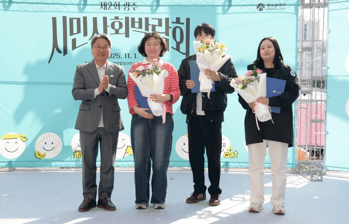 À̳¯ Çà»ç¿¡¼´Â ±¤ÁÖ ½Ã¹Î»çȸÀÇ ¹ßÀü¿¡ ±â¿©ÇÑ ¹ÚÀº¿µ ±¤ÁÖÀαÇÁö±â Ȱ¦ »óÀÓȰµ¿°¡, ¹ÚÇØÁ¤ ±¤ÁÖºñ°ÇŽ½Ä´Ü ´ëÇ¥, À¯Ã¢¹Î ±¤ÁÖÀü³²ÃкÒÇൿ »ç¹«±¹Àå µî °ø·ÎÀÚ 3¸í¿¡°Ô ±¤ÁÖ±¤¿ª½ÃÀå ǥâÀÌ ¼ö¿©µÆ´Ù.
