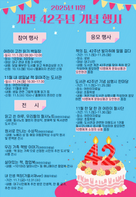 ÁÖ¿ä Çà»ç·Î´Â ¡ã42ÁÖ³âÀ» ÃàÇÏÇÏ´Â ¹®±¸¸¦ ÀÛ¼ºÇÏ´Â ¡®Ã¥ÀÇ Áý, 42Áֳ⠹ßÀÚÃë¿¡ ¸»À» °É´Ù¡¯, ¡ãµµ¼°ü°ú °ü·ÃµÈ »ïÇà½Ã¸¦ °ø¸ðÇÏ´Â ¡®µµ¼°ü 42Áֳ⠱â³ä »ïÇà½Ã ÇѸ¶´ç¡¯ µîÀ» 11¿ù 25ÀϱîÁö ½Ç½ÃÇÑ´Ù.