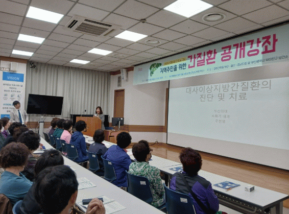 À̳¯ ¿¬»ç·Î ³ª¼± ¿ìÇö¿µ ±³¼ö(ºÎ»ê´ëÇб³º´¿ø ¼Òȱ⳻°ú)´Â'´ë»çÀÌ»ó Áö¹æ°£ÁúȯÀÇ Áø´Ü ¹× Ä¡·á'¸¦ °ÀÇÇß´Ù. À̾î Çã³»À± ±³¼ö(ÀÎÁ¦´ëÇб³ ÇØ¿î´ë¹éº´¿ø ¼Òȱ⳻°ú)´Â'¾ËÄÚ¿Ã °£ÁúȯÀÇ Áø´Ü ¹× Ä¡·á'¿¡ ´ëÇÏ¿© ÁֹεéÀÌ ÈçÈ÷ ±Ã±ÝÇØÇÏ´Â °£ °Ç° Á¤º¸¸¦ ½±°í Èï¹Ì·Ó°Ô Àü´ÞÇß´Ù.