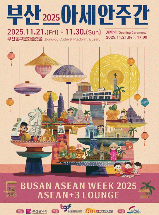 À̹ø '2025 ºÎ»ê-¾Æ¼¼¾È ÁÖ°£'Àº '¾Æ¼¼¾ÈÇ÷¯½º¾²¸®(ASEAN+3) ¶ó¿îÁö'¸¦ ÁÖÁ¦·Î ¿¸®¸ç, '¾Æ¼¼¾ÈÀÇ ¹Ì(Ú¸,) ¾Æ¼¼¾ÈÀÇ ºû(ÎÃ), ¾Æ¼¼¾ÈÀÇ Ã¢(?), ÇÑ¡¤Áß¡¤ÀÏÀÇ ²Þ(ÙÓ)'ÀÌ ÇÙ½É °³³ä(ÄܼÁÆ®)À¸·Î ±¸¼ºµÈ´Ù.