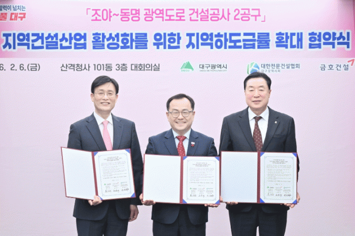 È«¼ºÁÖ ´ë±¸±¤¿ª½Ã °æÁ¦ºÎ½ÃÀåÀº ¡°°ø»ç Âø°ø ´Ü°èºÎÅÍ Áö¿ª¾÷ü Âü¿©À²À» ³ôÀ̱â À§ÇÑ »óÈ£ Çù·Âü°è¸¦ ±¸ÃàÇÏ°Ô µÇ¾î ¸Å¿ì ¶æ±í°Ô »ý°¢ÇÑ´Ù¡±¸ç ¡°À̹ø Çù¾àÀÌ Ä§Ã¼µÈ Áö¿ª°æÁ¦¿¡ Ȱ·ÂÀ» ºÒ¾î³Ö´Â °è±â°¡ µÇ±æ ¹Ù¶õ´Ù¡±°í ¸»Çß´Ù.