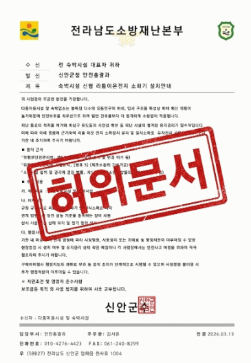 ÃÖ±Ù ½Å¾È±º ¿¡¼´Â °ü³» ¼÷¹Ú½Ã¼³¿¡ ´ëÇØ ¡°¼÷¹Ú½Ã¼³ ½ÅÇü ¸®Æ¬ÀÌ¿ÂÀüÁö ¼Òȱ⠼³Ä¡ ¾È³»¡±¶ó´Â Á¦¸ñÀ¸·Î ½Å¾È±ºÃ» ¾ÈÀüÃѰý°ú ¹ß½ÅÀ¸·Î °ü³» ¼÷¹Ú½Ã¼³ ´ëÇ¥ÀÚµéÀ» ¼ö½ÅÀÚ·Î ¹ß¼ÛµÆ´Ù.