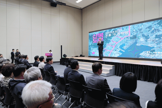 ¹ÚÇüÁØ ½ÃÀåÀº ¡°»êº¹µµ·Î´Â ºÎ»êÀÇ »ê¾÷È¿Í µµ½Ã ¼ºÀåÀ» À̲ö Ãâ¹ßÁ¡ÀÌÀÚ ¿øµµ½ÉÀÇ ÇÙ½É °ø°£¡±À̶ó¸ç, ¡°À̹ø ±³Å롤ÁÖ°ÅÇõ¸íÀ» ÅëÇØ »êº¹µµ·Î¸¦ µµ½Ã Á߽ɰú ´Ù½Ã ¿¬°áÇϰí, ½Ã¹Î ´©±¸³ª Æí¸®ÇÏ°Ô À̵¿ÇÒ ¼ö Àִ ȯ°æÀ» Á¶¼ºÇÏ¿© ºÎ»êÀÇ »õ·Î¿î 100³âÀ» ¿©´Â Ãâ¹ßÁ¡À¸·Î ¸¸µé°Ú´Ù¡±¶ó°í ÀüÇß´Ù.