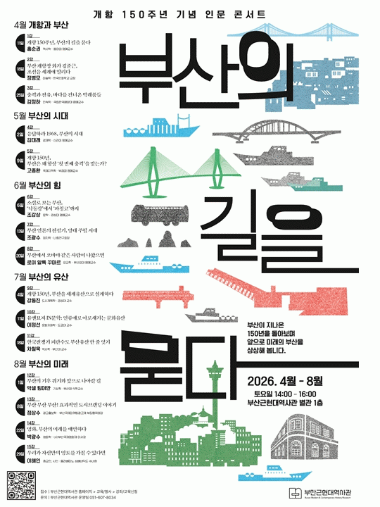 4¿ù¿¡´Â ¡ãÈ«¼ø±Ç(¿ª»çÇÐ, µ¿¾Æ´ë ¸í¿¹±³¼ö) ¡ãÁ¤º´¸ð(¹Ì¼úÇÐ, Çѱ¹¹ÎÈÇб³ ±³Àå) ¡ã±èÁ¤ÇÏ(¹Î¼ÓÇÐ, ±¹¸³Çѱ¹Çؾç´ë ¸í¿¹±³¼ö)°¡ °¿¬À» ¸Ã¾Æ °³Ç× ÀÌÈÄ ºÎ»êÇ×ÀÇ ¿ª»ç¿Í ¹®È ±³·ù ¾ç»óÀ» ÅëÇØ ¡®Çؾ絵½Ã ºÎ»ê¡¯ÀÇ ¸é¸ð¸¦ ¹àÈù´Ù.