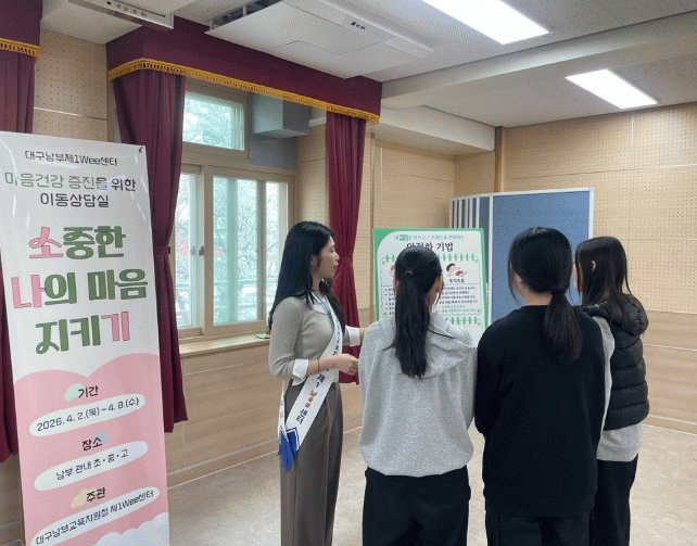 ³²ºÎÁ¦2À§(Wee)¼¾ÅÍ´Â ¡®½ºÆ®·¹½º ·Î±×¾Æ¿ô(logout)¡¯À» ÁÖÁ¦·Î »ý¸íÁ¸Áß Ä·ÆäÀÎÀ» ¿î¿µÇÑ´Ù. ¿î¿µ ÀÏÁ¤Àº 4¿ù 8ÀÏ ´ë°ÇÁßÇб³, 4¿ù 10ÀÏ ´ë±¸¿ù¼ÃʵîÇб³, 4¿ù 16ÀÏ ´ë±¸³ëÀüÃʵîÇб³ ¼øÀ¸·Î ÁøÇàµÈ´Ù.