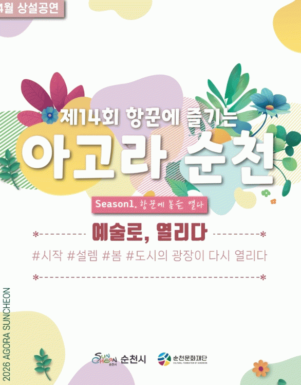 14³â°¸¦ ¸ÂÀº ¾Æ°í¶ó ¼øÃµÀº ¡®¼øÃµÀÇ ½Ã°£, ¿¹¼ú·Î È帣´Ù¡¯¸¦ ÁÖÁ¦·Î ½Ã¹Î Âü¿©Çü ¹®È¿¹¼ú°ø¿¬À» ¿î¿µÇÑ´Ù.