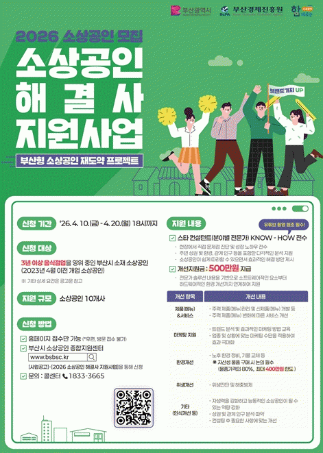 ½Åû ´ë»óÀº 3³â ÀÌ»ó À½½ÄÁ¡¾÷À» ¿µÀ§Çϰí ÀÖ´Â ºÎ»ê ¼ÒÀç ¼Ò»ó°øÀÎÀ̸ç, Âü°¡ ½ÅûÀº ¿À´Ã(10ÀÏ)ºÎÅÍ 4¿ù 20ÀϱîÁö ½Ã ¼Ò»ó°øÀÎÁ¾ÇÕÁö¿ø¼¾ÅÍ ´©¸®ÁýÀ» ÅëÇØ ÇÒ ¼ö ÀÖ´Ù.