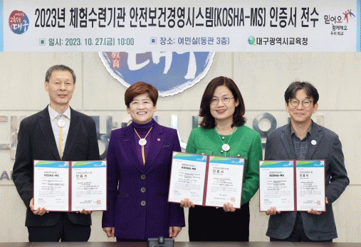 ´ë±¸½Ã±³À°Ã»Àº üÇè¤ý¼ö·Ã±â°üÀ» ´ë»óÀ¸·Î Áß´ëÀçÇØÃ³¹ú¹ý, »ê¾÷¾ÈÀüº¸°Ç¹ý µî °ü°è ¹ý·É¿¡ ÀûÇÕÇÑ ¾ÈÀüº¸°Ç°ü¸® ü°è¸¦ ±¸ÃàÇÑ °á°ú ¿ì¼ö¼ºÀ» ÀÎÁ¤¹Þ¾Æ ´ë±¸±³À°Çؾç¼ö·Ã¿ø, ´ë±¸±³À°³«µ¿°¼ö·Ã¿ø, ´ë±¸À¯¾Æ±³À°ÁøÈï¿ø µî üÇè¤ý¼ö·Ã±â°ü 3°÷ÀÌ Çѱ¹»ê¾÷¾ÈÀüº¸°Ç°ø´ÜÀ¸·ÎºÎÅÍ ¾ÈÀüº¸°Ç°æ¿µ½Ã½ºÅÛ ÀÎÁõÀ» ¹Þ¾Ò´Ù.