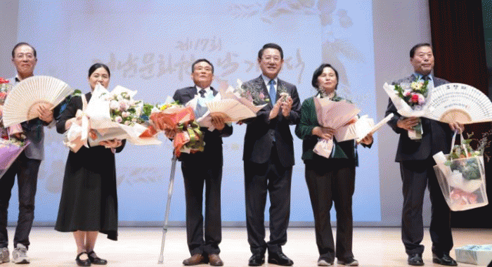 Çà»ç¿¡¼± Áö¿ª ¹®È¿¹¼úÁøÈï¿¡ ±â¿©ÇÑ ¼øÃµ¹®È¿ø°ú Áö±ØÇÑ È¿¼ºÀ¸·Î Áö¿ª»çȸ¿¡ ¸ð¹üÀÌ µÈ ÀåÇâ¼± ±¸·Ê¹®È¿ø ȸ¿ø µî 4¸í¿¡°Ô µµÁö»ç ǥâµµ ¼ö¿©µÆ´Ù.