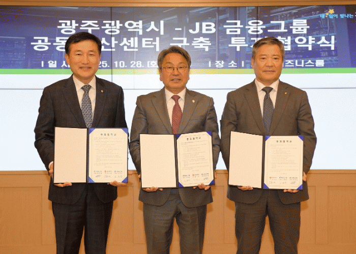 °±âÁ¤ ±¤ÁÖ½ÃÀåÀº ¡°À̹ø JB±ÝÀ¶±×·ì °øµ¿Àü»ê¼¾ÅÍ ±¸ÃàÀº ±¤ÁÖ°¡ ÀΰøÁö´É(AI) Á߽ɵµ½Ã·Î ³ª¾Æ°¡´Â µ¥ Áß¿äÇÑ ±â¹Ý½Ã¼³ÀÌ µÉ °Í¡±À̶ó¸ç ¡°ÀΰøÁö´É(AI)°ú ±ÝÀ¶ÀÇ À¶ÇÕÀ» ÅëÇØ »õ·Î¿î »ê¾÷ ±âȸ¸¦ âÃâÇϰí, Áö¿ª ±ÕÇü¹ßÀüÀÇ ¸ð¹ü ¸ðµ¨·Î ÀÚ¸®¸Å±èÇÒ ¼ö ÀÖµµ·Ï Àû±Ø Áö¿øÇϰڴ١±°í ¹àÇû´Ù.