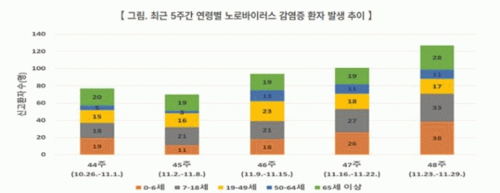 Áúº´°ü¸®Ã» Ç¥º»°¨½Ã ÀÚ·á¿¡ µû¸£¸é ÃÖ±Ù 4ÁÖ°£(45~48ÁÖ) ³ë·Î¹ÙÀÌ·¯½º °¨¿°Áõ ȯÀÚ°¡ ²ÙÁØÈ÷ Áõ°¡Çϰí ÀÖÀ¸¸ç, 48ÁÖ ½Å°í ȯÀÚ´Â 127¸íÀ¸·Î, Áö³ÇØ °°Àº ±â°£(80¸í) ´ëºñ 58.8% Áõ°¡ÇÑ °ÍÀ¸·Î ³ªÅ¸³µ´Ù.