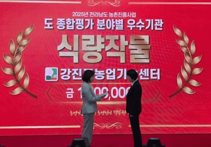 ÃÖ¿µ¾Æ °Áø±º ³ó¾÷±â¼ú¼¾ÅÍ ¼ÒÀåÀº ¡°À̹ø ¼ö»óÀº ³ó¾÷ ÇöÀå°ú ²÷ÀÓ¾øÀÌ ¼ÒÅëÇÏ¸ç ½ÇÁúÀûÀÎ º¯È¸¦ ¸¸µé¾î³½ °á°ú¡±¶ó¸ç ¡°¾ÕÀ¸·Îµµ ±âÈĺ¯È, °í·ÉÈ, ³ëµ¿·Â ºÎÁ· µî ±Þº¯ÇÏ´Â ³ó¾÷ȯ°æ¿¡ Àû±Ø ´ëÀÀÇϱâ À§ÇØ °úÇпµ³ó ±â¹ÝÀ» È®°íÈ÷ Çϰí, °Áø ³ó¾÷ÀÇ Áö¼Ó°¡´ÉÇÑ ¹Ì·¡¸¦ ¿©´Â µ¥ ÃÖ¼±À» ´ÙÇϰڴ١±°í ¹àÇû´Ù.