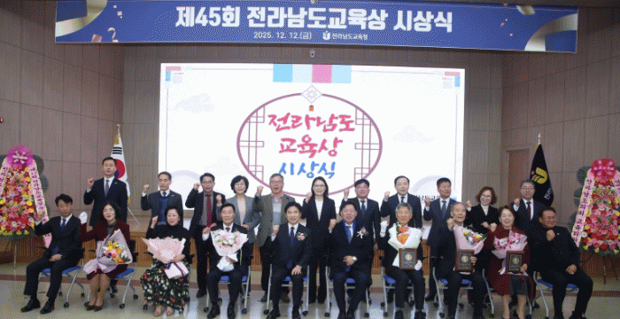 ¶ÇÇÑ Àü¶ó³²µµ±³À°»ó¿¡ ´ëÇØ ¡°Àü³² ±³À°ÀÇ ¹æÇâÀ» ¼¼¿ì°í, ¹Ì·¡¼¼´ë¸¦ À§ÇØ Á¶¿ëÈ÷ ¶¡ Èê·Á ¿Â ºÐµé²² µå¸®´Â Àü³² ±³À°°è ÃÖ°íÀÇ ¿µ¿¹¡±¶ó¸ç ¡°¿µ¿¹·Î¿î »óÀ» ¹Þ°Ô µÇ½Å ´Ù¼¸ ºÐÀº °¢ÀÚÀÇ ÀÚ¸®¿¡¼ ´©±¸º¸´Ù Çå½ÅÀûÀ¸·Î Àü³² ±³À°À» ÁöÄÑ ¿À½Å ºÐµé¡±À̶ó°í °Á¶Çß´Ù.