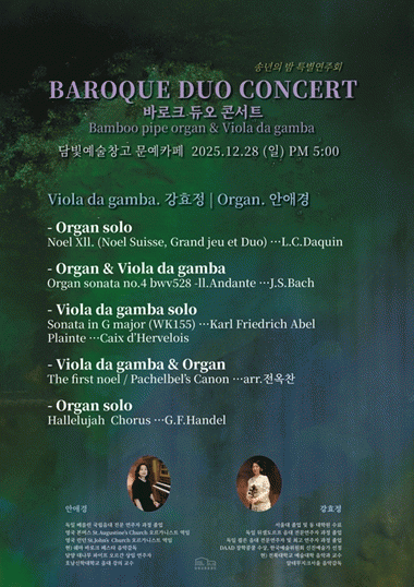 Àç´Ü °ü°èÀÚ´Â, ¡°´Ü¼øÇÑ À½¾Ç °¨»óÀ» ³Ñ¾î, ¹Ù·ÎÅ© ½Ã´ë ¾Ç±âÀÇ ¿¹¼úÀû °¡Ä¡¿Í ´ã¾çÀÌ Áö´Ñ ¹®ÈÀû Ư¼ºÀ» ÇÔ²² ü°¨Çϸç ÇÑ ÇØ¸¦ Æí¾ÈÇÏ°í µû½ºÇÏ°Ô ¸¶¹«¸®ÇÒ ¼ö Àֱ⸦ ¹Ù¶ó´Â ¸¶À½À» ´ã¾Æ ÁغñÇÑ °ø¿¬ÀÌ´Ù.¡±°í ¸»Çϸç, ¡°´ã¾çÀÇ °æ°üÀÎ °ü¹æÃµ°ú °ü¹æÁ¦¸²ÀÇ Ç³Ä¡¸¦ °¡µæ ´À³¥ ¼ö ÀÖ´Â ¹®ÈÀç»ý°ø°£ ´ãºû¿¹¼úâ°í ¹®¿¹Ä«Æä¿¡ ¹æ¹®ÇÏ¿© 2025³â ÇÑ ÇØ¸¦ µÇ»õ±â´Â ¼ÒÁßÇÑ Ãß¾ïÀ» ´ã¾Æ °¡¼ÌÀ¸¸é ÇÑ´Ù.¡±°í ¸»Çß´Ù.