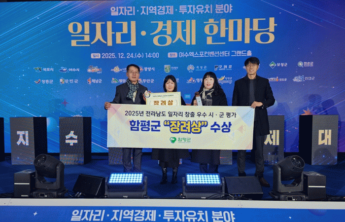 ÇÔÆò±ºÀº Áö³ 24ÀÏ ¿©¼ö ¿¢½ºÆ÷ÄÁº¥¼Ç¼¾ÅÍ ±×·£µåȦ¿¡¼ ¿¸° ¡®Àü¶ó³²µµ ÀÏÀÚ¸®¡¤°æÁ¦ ÇѸ¶´ç Çà»ç¡¯¿¡¼ 2025³â ÀÏÀÚ¸® âÃâ ¿ì¼ö ½Ã±º Æò°¡ °á°ú ¡®Àå·Á»ó¡¯À» ¼ö»óÇß´Ù°í 25ÀÏ ¹àÇû´Ù. ÀÌ´Â, 2018³â ¼ö»ó ÀÌÈÄ 7³â ¸¸ÀÇ Äè°ÅÀÌ´Ù.