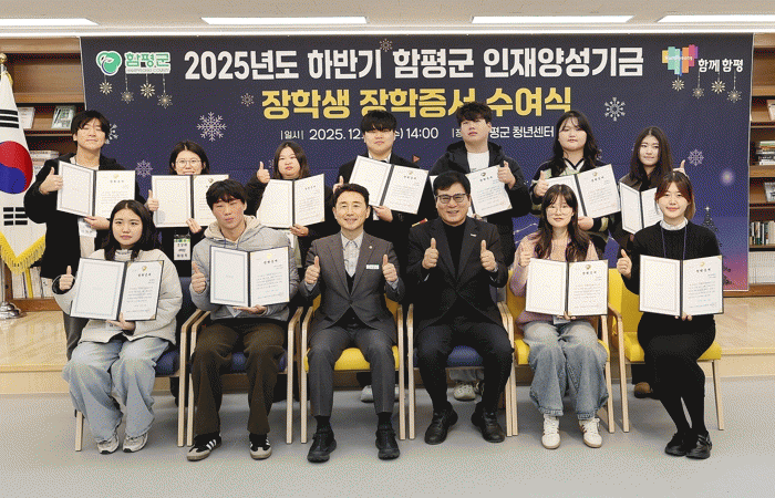 ÇÔÆò±ºÀº 25ÀÏ ¡°¡®2025³â ÇϹݱâ ÇÔÆò±º ÀÎÀç¾ç¼º±â±Ý ÀåÇлý ÀåÇÐÁõ¼ ¼ö¿©½Ä¡¯ÀÌ Áö³ 24ÀÏ ÇÔÆò±º û³â¼¾ÅÍ¿¡¼ °³Ãֵƴ١±°í ¹àÇû´Ù.