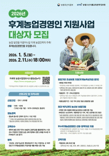 Èİè³ó¾÷°æ¿µÀÎ À°¼º»ç¾÷Àº ³ó¾÷ÀÇ Áö¼ÓÀûÀÎ ¹ßÀüÀ» À̲ø À¯¸ÁÇÑ ¿¹ºñ ³ó¾÷Àΰú ³ó¾÷°æ¿µÀÎÀ» ¹ß±¼ÇØ, ÀÏÁ¤ ±â°£ Àڱݡ¤±³À°¡¤ÄÁ¼³ÆÃ µîÀ» Á¾ÇÕÀûÀ¸·Î Áö¿øÇÔÀ¸·Î½á Á¤¿¹ ³ó¾÷ ÀηÂÀ¸·Î À°¼ºÇϱâ À§ÇÑ Á¦µµ´Ù.