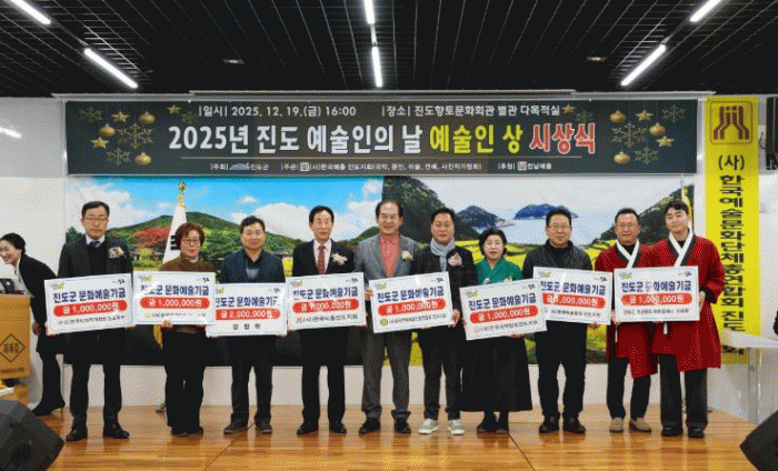 Áö³ 12¿ù¿¡´Â ¹®È¿¹¼úÀÎÀÇ ³¯À» ¸Â¾Æ Áøµµ±º ¿¹ÃÑ, ¹®ÀÎÇùȸ, ¹Ì¼úÇùȸ, »çÁøÀÛ°¡Çùȸ, ¿¬¿¹¿¹¼úÀÎÇùȸ µî 5°³ ´Üü¿Í ¹®È¿¹¼úÀÎ ÀÓÇöÈ£, ¹ÚÁÖ»ý, ¹Ú¼Û¼ö, ¹Ú¿µ°ü, ±è¿ë¿í ¾¾°¡ ÃÑ 970¸¸ ¿øÀ» ±âÅ¹ÇØ ¶æ±íÀº ÇÑÇØ¸¦ ¸¶°¨Çß´Ù.