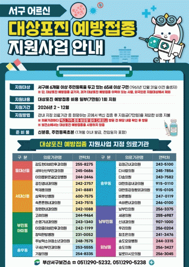 Áö¿ø ´ë»óÀº ¼±¸¿¡ 6°³¿ù ÀÌ»ó Áֹεî·ÏÀ» µÎ°í ÀÖ´Â 65¼¼ ÀÌ»ó ¾î¸£½Å(1961. 12. 31. ÀÌÀü Ãâ»ýÀÚ)À¸·Î ¿¹¹æÁ¢Á¾ ºñ¿ëÀÇ ÀϺÎ(7¸¸ ¿ø)¸¦ 1ȸ Áö¿øÇÑ´Ù. ´Ü, ´ë»óÆ÷Áø ¿¹¹æÁ¢Á¾ ±Ý±âÀÚ, °ú°Å ´ë»óÆ÷Áø ¿¹¹æÁ¢Á¾ ÀÌ·ÂÀÌ ÀÖ´Â »ç¶÷, ¿Ü±¹ÀÎÀº ´ë»ó¿¡¼ Á¦¿ÜµÈ´Ù.