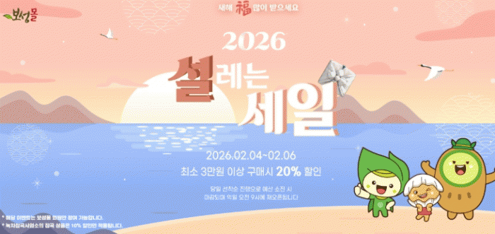 À̹ø Çà»ç´Â º¸¼º¸ô ȸ¿øÀ» ´ë»óÀ¸·Î 1ȸ 3¸¸ ¿ø ÀÌ»ó ±¸¸Å ½Ã ÃÖ´ë 20% ÇÒÀÎÀÌ Àû¿ëµÇ¸ç(ÀϺΠǰ¸ñ Á¦¿Ü), ÀÏÀÏ Áö¿ø ¿¹»êÀÌ ¼ÒÁøµÇ¸é ´çÀÏ ÇÒÀÎ À̺¥Æ®´Â Á¶±â Á¾·áµÈ´Ù. Á¾·á ½Ã À̺¥Æ®´Â ´ÙÀ½ ³¯ ¿ÀÀü 9½ÃºÎÅÍ ´Ù½Ã ÁøÇàµÈ´Ù.