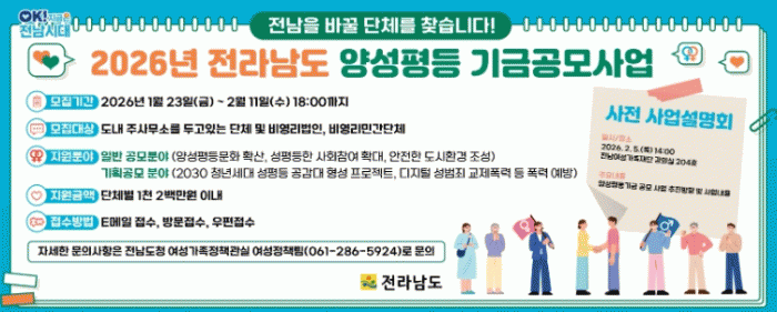 Âü¿©¸¦ ¹Ù¶ó´Â ´Üü´Â 11ÀϱîÁö Àü³²µµ ¿©¼º°¡Á·Á¤Ã¥°ü½Ç·Î ½Åû¼·ù¸¦ µî±â¿ìÆí, ¹æ¹® ¶Ç´Â ÀüÀÚ¿ìÆíÀ¸·Î Á¦ÃâÇÏ¸é µÈ´Ù.