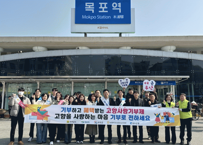 À̳¯ ¸ñÆ÷¿ª¿¡¼´Â Àü³²µµ¿Í ¸ñÆ÷½Ã, ¹«¾È±ºÀÌ ÇÔ²² ±Í¼º°´À» ´ë»óÀ¸·Î °íÇ⠹湮 ȯ¿µ Àλç¿Í ÇÔ²² °íÇâ»ç¶û ½Çõ Ä·ÆäÀÎÀ» ÆîÃÆ´Ù. ¼øÃµ¿ª¿¡¼µµ ¼³ ¿¬ÈÞ¸¦ ¸Â¾Æ °íÇâÀ» ãÀº ±Í¼º°´À» ´ë»óÀ¸·Î Àü³²µµ 300¿© ´Ù¾çÇÑ ´ä·ÊǰÀ» È«º¸ÇÏ¸ç °íÇâ»ç¶û±âºÎÁ¦ Âü¿©¸¦ µ¶·ÁÇß´Ù.