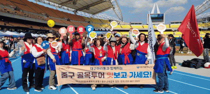 À̹ø Ä·ÆäÀÎÀº ´ë±¸¸¦ ´ëÇ¥ÇÏ´Â ´ë±Ô¸ð ½ºÆ÷Ã÷ Çà»çÀÎ ´ë±¸¸¶¶óÅæ°ú ¿¬°èÇØ °ñ¸ñÅõ¾î ºê·£µå ÀÎÁöµµ¸¦ ³ôÀÌ°í °ü±¤°´ À¯ÀÔÀ» È®´ëÇϱâ À§ÇØ ¸¶·ÃµÆ´Ù. Áß±¸´Â ´ëȸ ´çÀÏ È«º¸ºÎ½º¸¦ ¿î¿µÇÏ´Â ÇÑÆí, ÄÚ½º Àα٠ÁÖ¿ä ÁöÁ¡¿¡¼ °Å¸® È«º¸È°µ¿À» º´ÇàÇϸç ÇöÀå Áß½ÉÀÇ °ü±¤ È«º¸¸¦ ÆîÃÆ´Ù.