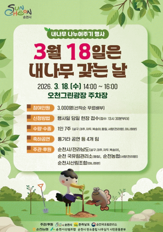 Àü¶ó³²µµ, ¼øÃµ±¹À¯¸²°ü¸®¼Ò, ¼øÃµ³óÇù, ¼øÃµ½Ã»ê¸²Á¶ÇÕ°ú Çù·ÂÇÏ¿© °ú½Ç¼ö ¹× Á¶°æ¼ö, ¹Ì´ÏȺРµî ÃÑ 21,000ÁÖÀÇ ¹¦¸ñÀ» ÁغñÇß´Ù.