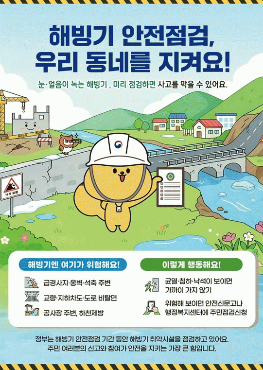 À̹ø Á¡°ËÀº ¾ó¾ú´ø ÁöÇ¥¸éÀÌ ³ìÀ¸¸é¼ ¾àȵǴ ½Ã±â¿¡ ¹ß»ýÇÒ ¼ö ÀÖ´Â ¾ÈÀü»ç°í¸¦ ¼±Á¦ÀûÀ¸·Î ¿¹¹æÇϱâ À§ÇØ ÃßÁøµÈ´Ù.