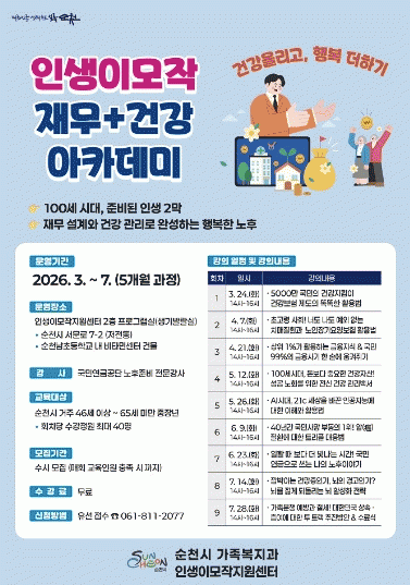 ¼øÃµ½Ã ÀλýÀ̸ðÀÛÁö¿ø¼¾ÅͰ¡ ¿î¿µÇÏ´Â À̹ø ÇÁ·Î±×·¥Àº 3¿ù 24ÀϺÎÅÍ 7¿ù 28ÀϱîÁö 5°³¿ù°£ ÁøÇàµÇ¸ç, ¼øÃµ½Ã¿¡ °ÅÁÖÇÏ´Â 46¼¼ ÀÌ»ó 65¼¼ ¹Ì¸¸ Áß¡¤Àå³â 40¸íÀ» ´ë»óÀ¸·Î ÇÑ´Ù.