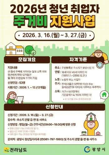 À̹ø »ç¾÷Àº Àü¶ó³²µµ¿Í ±¤¾ç½Ã°¡ ÇÔ²² ÃßÁøÇϴ û³â Áö¿ø Á¤Ã¥À¸·Î, Áö¿ª¿¡¼ ±Ù·ÎÇϰųª »ç¾÷À» ¿î¿µÇϴ û³âµéÀÇ ÁÖ°Å ¾ÈÁ¤À» µ½°í Àå±âÀûÀÎ Áö¿ª Á¤ÂøÀ» Áö¿øÇϱâ À§ÇØ ¸¶·ÃµÆ´Ù.