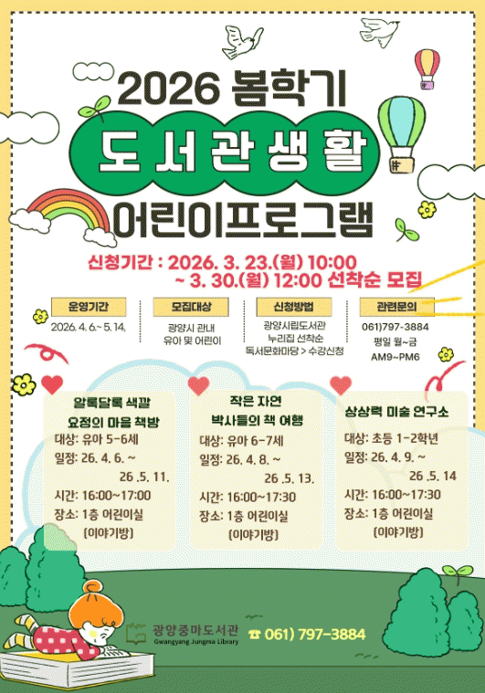 ÇÁ·Î±×·¥ ³»¿ë°ú ½Åû ¹æ¹ý µî ÀÚ¼¼ÇÑ »çÇ×Àº ±¤¾ç½Ã¸³µµ¼°ü ´©¸®Áý¿¡¼ È®ÀÎÇϰųª ±¤¾çÁ߸¶µµ¼°üÀ¸·Î ¹®ÀÇÇÏ¸é ¾È³»¹ÞÀ» ¼ö ÀÖ´Ù.