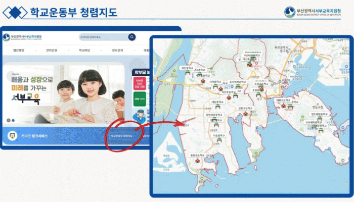 À̸¦ °³¼±Çϱâ À§ÇØ ¼ºÎ±³À°Áö¿øÃ»Àº °ü³» Çб³¿îµ¿ºÎ Á¤º¸¸¦ Áöµµ ±â¹ÝÀ¸·Î È®ÀÎÇÒ ¼ö ÀÖ´Â ¡®Ã»·Å Áöµµ(MAP)¡¯ ¼ºñ½º¸¦ ±¸ÃàÇß´Ù. ¡®Ã»·Å Áöµµ(MAP)¡¯´Â ¼ºÎ±³À°Áö¿øÃ» ȨÆäÀÌÁö¿¡¼ ¸µÅ©¸¦ ÅëÇØ Á¢¼ÓÀÌ °¡´ÉÇϸç, Áöµµ¿¡¼ Çб³ ¾ÆÀÌÄÜÀ» Ŭ¸¯Çϸé Çб³ Çб³¿îµ¿ºÎ °Ô½ÃÆÇÀ¸·Î ¹Ù·Î ¿¬°áµÈ´Ù.