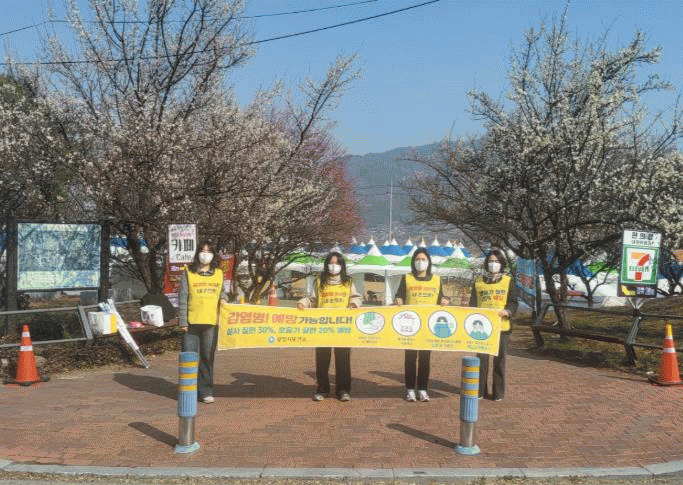 ÇöÀå¿¡¼´Â °¨¿°º´ ¿¹¹æ ¾È³» Ã¥ÀÚ¿Í Çö¼ö¸·À» Ȱ¿ëÇϰí È«º¸ Á¶³¢¸¦ Âø¿ëÇØ Ä·ÆäÀÎÀ» ÁøÇàÇÏ¸ç ¹æ¹®°´µéÀÌ ¿¹¹æ¼öÄ¢À» ½±°Ô ÀÌÇØÇÏ°í ½ÇõÇÒ ¼ö ÀÖµµ·Ï È«º¸ Ȱµ¿À» ÆîÃÆ´Ù.