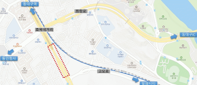 È£±¹·Î(µ¿È±³ ³×°Å¸®)´Â »ê°Ý´ë±³¿¡¼ µ¿¡¤¼º¯Áö±¸ µî Àα٠ÁÖ°ÅÁö¿ªÀ¸·Î Á¢±ÙÇÏ·Á´Â Â÷·®ÀÌ ¸¹Áö¸¸, Á÷Áø Â÷·®°ú ¿ìȸÀü Â÷·®ÀÌ °°Àº Â÷·Î¸¦ »ç¿ëÇÏ´Ù º¸´Ï ´ë±â Â÷·Î ºÎÁ·À¸·Î »ó½À Á¤Ã¼°¡ ¹Ýº¹µÆ´Ù. ÀÌ¿¡ ¿ìȸÀü Àü¿ëÂ÷·Î¸¦ Ãß°¡·Î È®º¸ÇØ ¹æÇ⺰ Â÷·® È帧À» ºÐ¸®Çϰí, ¿À´Â 7¿ù ¸»±îÁö °ø»ç¸¦ ¸¶¹«¸®ÇÒ °èȹÀÌ´Ù.