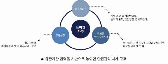 ÈÀç ¹ß»ý ½Ã °æº¸À½À» ÀÎÁöÇϱ⠾î·Á¿î ³ó¾ÆÀÎÀÇ Æ¯¼ºÀ» °í·ÁÇØ ½Å°í¿Í Ãʱ⠴ëÀÀÀÌ °¡´ÉÇϵµ·Ï ¸¶·ÃµÈ À̹ø »ç¾÷Àº, °Ü¿ïö ³¹æ±â±â »ç¿ë Áõ°¡·Î ÈÀç À§ÇèÀÌ ³ô¾ÆÁö´Â ½Ã±â¸¦ ¸Â¾Æ ÃßÁøµÆ´Ù. ÀåÈï¼Ò¹æ¼ ¿¹¹æ¾ÈÀü°ú¿Í ÀåÈﱺû, ÀåÈﱺ ¼ö¾îÅ뿪¼¾ÅͰ¡ Çù·ÂÇØ °øµ¿ ´ëÀÀü°è¸¦ ±¸ÃàÇß´Ù.
